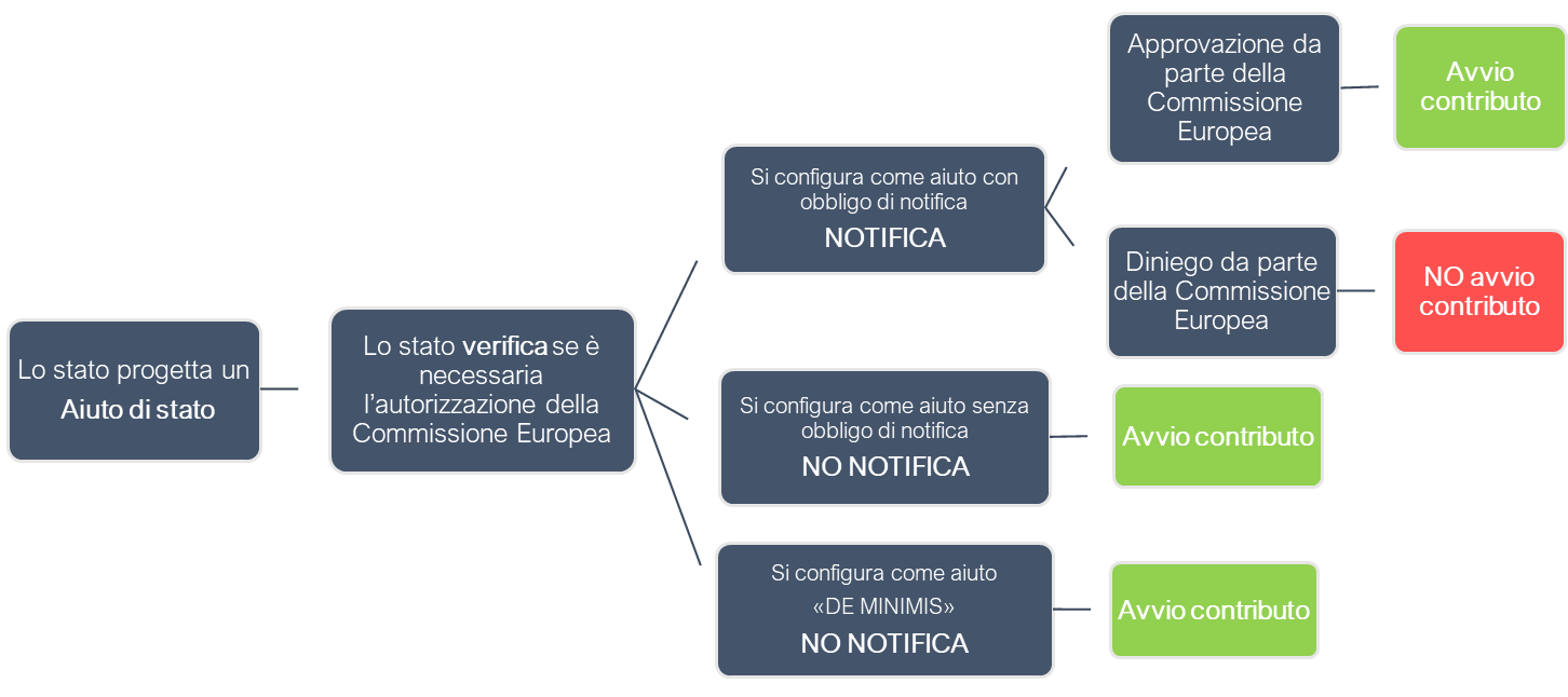 Il principio generale prevede che qualora uno stato membro intende promuovere un aiuto deve notificarlo alla Commissione europea. Prima della risposta della Commissione è vietato dare esecuzione alla misura notificata.